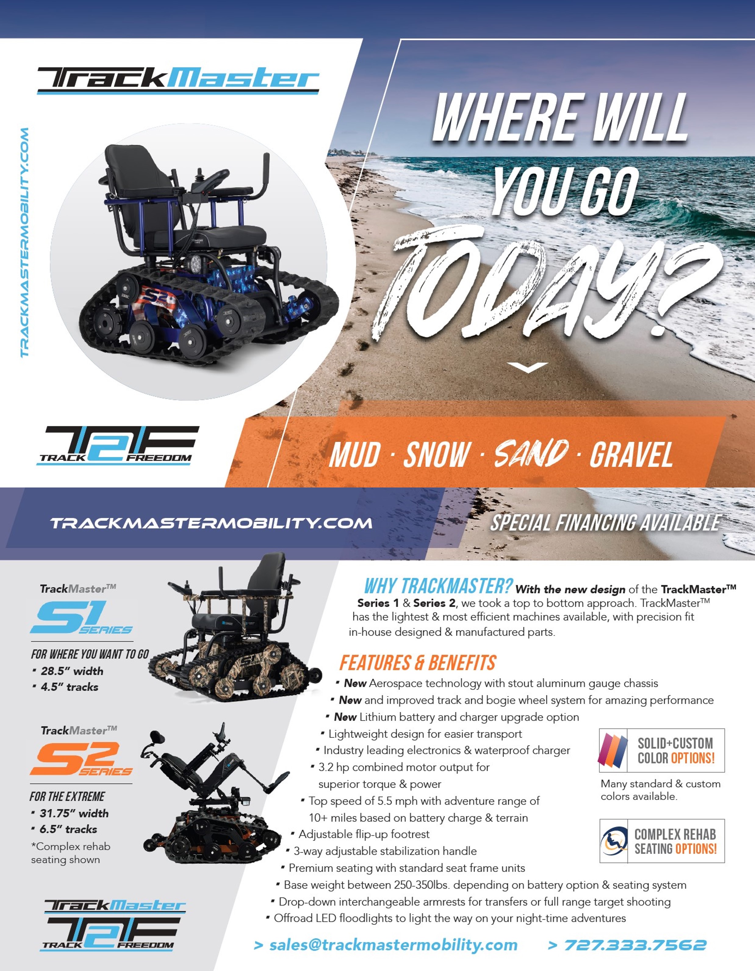 Experience fun and freedom for enjoyment and leisure rides. Trackmaster Mobility shown.